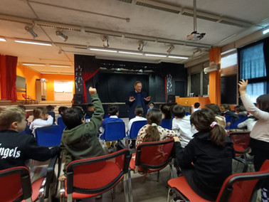 Per mettere la ciliegina sulla torta, giovedì, il suo autore, il signor Carlo Barbieri, è venuto a trovarci e con lui abbiamo potuto fare una bella chiacchierata, porre domande e tutte le nostre curiosità su come nasce un'idea come questa.